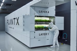 当社は「人工光型植物工場」について展示します。本装置は、光・温度・湿度・CO₂濃度といった栽培環境をIoTセンサーで常時モニタリングし、独自に開発した植物成長制御システム「PLANTX Platform」(以下、PLANTX Platformと呼ぶ)による解析結果に基づき自動制御します。これにより外部環境に依存せず、都市部や砂漠地帯など多様な立地条件下での安定した植物生産を可能にします。