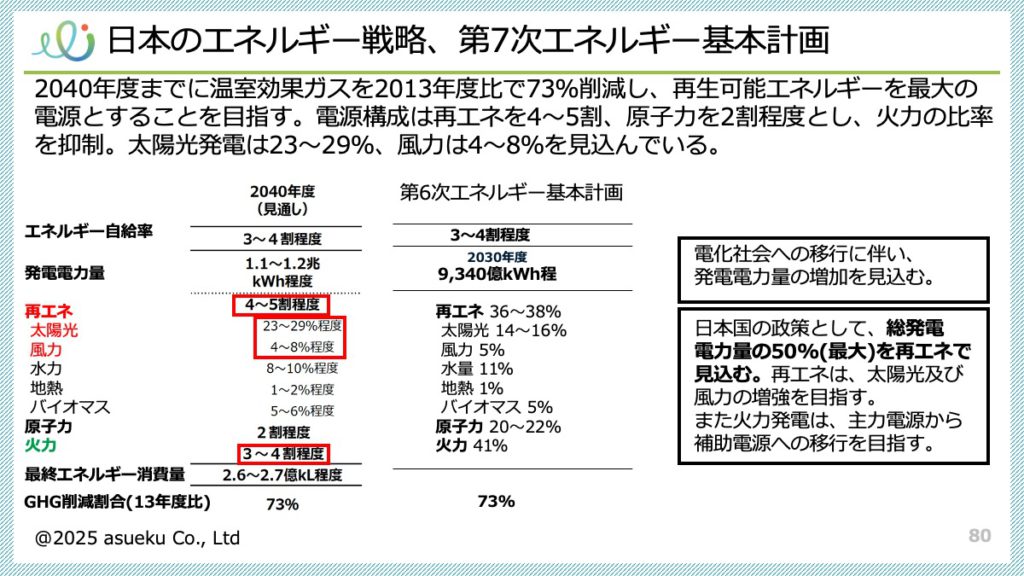 日本は「脱炭素電源を十分に確保できるか」が産業競争力に直結するという前提に立ち、電力コストを“最安”ではなく“国際的に遜色のない価格で安定供給”へ舵を切った。グリーン化に伴い国内の電力単価は上振れ得るため、英国45.1円/kWh、仏31.2円/kWh、独30.9円/kWhに対し、日本(2023年・産業用24.4円/kWh)が将来的にフランス/ドイツ水準に収まるレンジを目標とする考え方に整理されている。